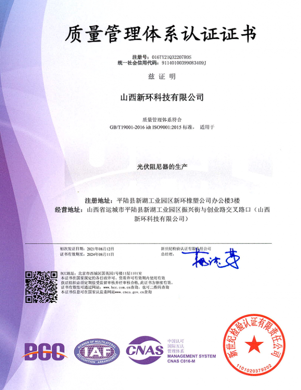 • 環(huán)境體系證書(shū)